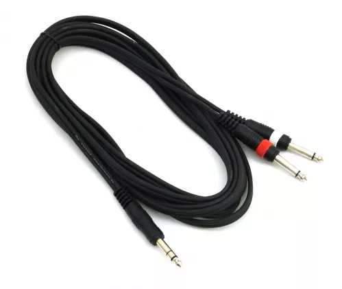 Kabel instrumentalny Jack stereo - 2xJack mono (TRS-2xTS) o długości 4m.