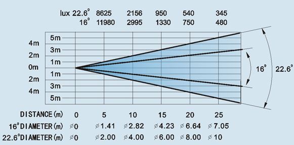 KĄT ŚWIECENIA: 16º~ 22.6º