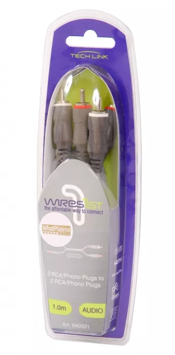 Inne oznaczenia produktu:Techlink 640031 kabel 2 x RCA wtyk - 2 x RCA wtyk 1m, Techlink 640031, 640031