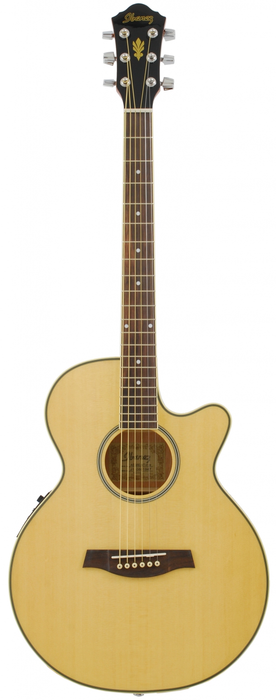 Gitara elektroakustyczna legendarnej firmy Ibanez. Instrument wykonany z najwyższej jakości gatunków drewna, co bezpośrednio przekłada się na znakomitą jakość brzmienia. Gitara odzywa się pełnym i wyrównanym pasmem. Po podłączeniu do wzmacniacza jest bardzo dobrze słyszalna na tle całego zespołu. Dodając do tego niezwykle wygodny gryf i ergonomiczny kształt pudła rezonansowego otrzymujemy instrument, który bez kompleksów konkuruje z droższymi gitarami. Piękny klasyczny design z nutką nowoczesności i naturalne robi niesamowite wrażenie wizualne.