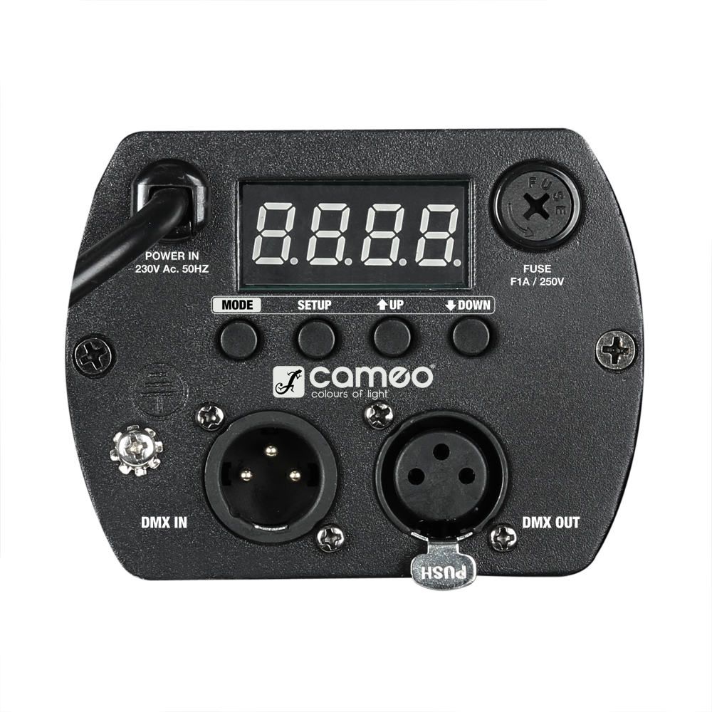 Szczególnie duża moc lampy PAR Studio Mini z siedmioma 8-watowymi diodami LED QUAD COLOUR umożliwia uzyskanie optymalnego mieszania kolorów i perfekcyjnego światła białego. Kąt promieniowania reflektora Studio LED Par wynosi 25 stopni, natomiast ste rowanie odbywa się poprzez pięć trybów DMX. Znajdujący się w tylnej części urządzenia wyświetlacz LED oraz cztery przyciski zapewniają łatwą i przejrzystą obsługę. Reflektor Studio Mini Par może pracować również w trybie autonomicznym dzięki wbudowan emu mikrofonowi i systemowi sound control.