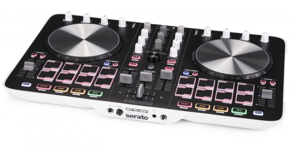 Reloop Beatmix 2 to zupełnie nowe wykonanie materiałowe jak i topograficzne kontrolera. Podniesiono wyraźnie ergonomię całego kontrolera oraz jakość wykonania suwakow, kół jog padow. BeatMix 2 to 2-kanałowy mikser, zoptymalizowany dla klubowego grania pozwalający na bardzo intuicyjną pracę. Dedykowane potencjometry korektora i pokrętła wzmocnienia, wysokiej jakości liniowe suwaki, bardzo lekko pracujący crossfader, 16 padów podświetlanych wielokolorowo oraz dwa ogromne koła jog dają bardzo dobre warunki do kreatywnego miksu i remixu tworzonego w locie. Kontroler BeatMix 2 opakowany jest w niskoprofilowej obudowie posiada czułe na dotyk koła jog zbudowane z aluminium o średnicy 14,4 cm z podświetlaniem LED pokazującym miejsce utworu.