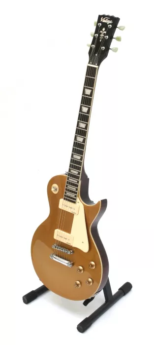 Vintage V100 oferuje niezwykle wysoki poziom jakości wykonania i konstrukcyjnego geniuszu, który obejmuje jednolity mahoniowy korpus i gryf wklejony z wyjątkową starannością. Wycięty z wyjątkową precyzją łuk klejenia dodatkowo zabezpiecza spoiwo. Mahoniowy korpus pokryty klonową nakładką to idealna recepta na klasę brzmienia, z którego ten typ gitary jest znany. Bluesowe, ciepłe, pełnej barwy brzmienie płynie z przystawki przy gryfie, a po przestawieniu trójpozycyjnego przełącznika na pozycję „rythm” wyzwalamy prawdziwą rockową moc dolnego przetwornika.