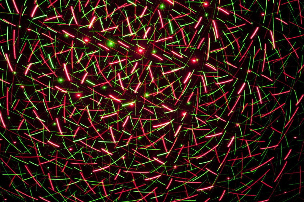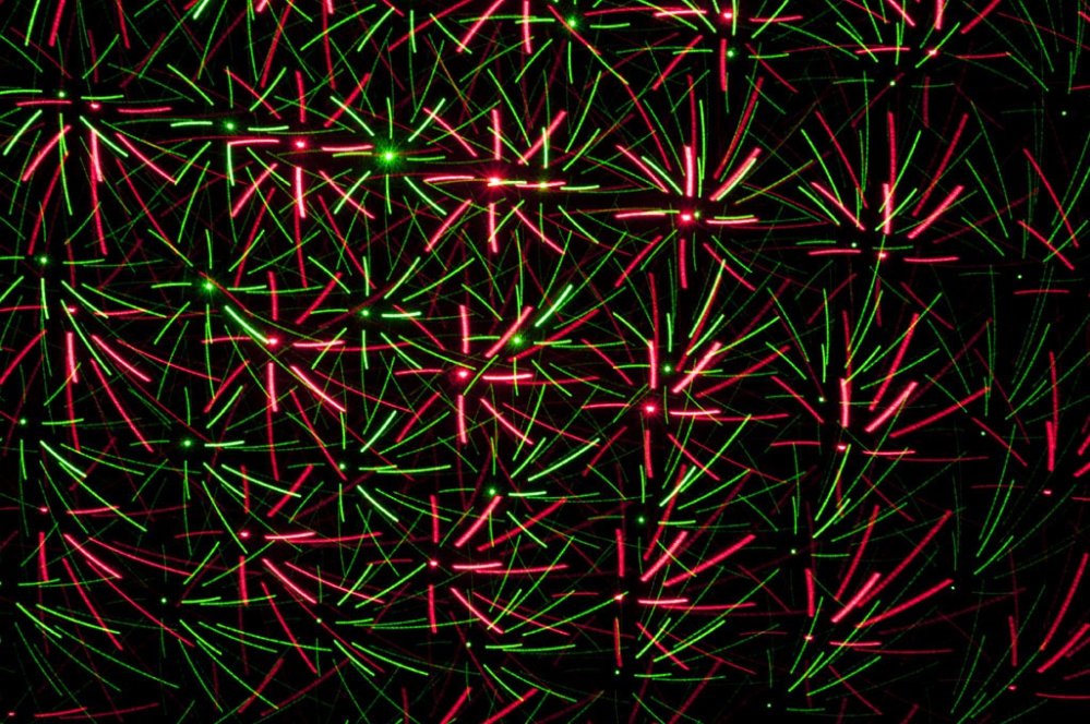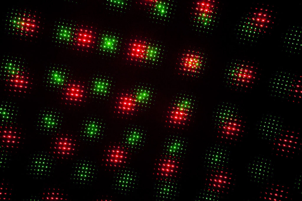 Moduł czerwonej diody laserowej o długości fali 650nm oraz moduł diody koloru zielonego DPSS o długości fali 532nm zapewnia jasne promienie oraz piękne kolory. Dodatkowo projektor posiada dobrą specyfikację wiązki laserowej o średnicy 3mm i dywergencji na poziomie 1,5mrad. W silniku zastosowano szybkie moduły krokowe o prędkości 2-5kpps, kąt padania wiązki laserowej wynosi 90°. Tryb auto oraz tryb reakcji na dźwięk są również dostępne. Czułość, efekt stroboskopu oraz prędkość mogą być kontrolowane manualnie z tyłu obudowy urządzenia. Urządzenie może być używane z dymem aby stworzyć setki promieni laserowych lub bez użycia dymu wypełniając pomieszczenie setkami kolorowych kropek na powierzchni.
