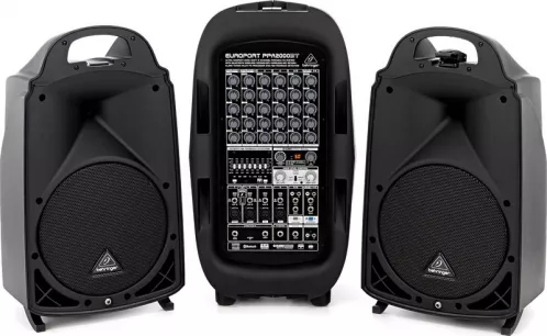 BehringerPPA2000BT - przenośny, ultra-kompaktowy, 8-kanałowysystem nagłośnieniowy z opcją mikrofonu bezprzewodowego, technologią bluetooh, procesorem DSP firmyKLARK-TEKNIK oraz, likwidującą nieprzyjemne sprzężenia, funkcją FBQ.Moc 2000 W.