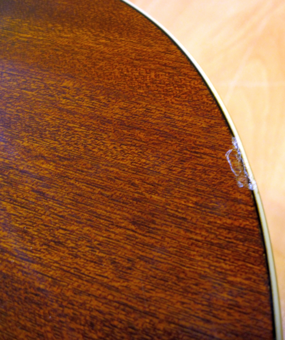Obicie lakieru na tylnej ścianie pudła rezonansowego.