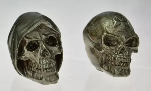 GK CYMBAL SKULL – nakrętki na statywy do talerzy perkusyjnych w kształcie czaszek, zastępujące zwykłe motylki. Posiadają standardowy gwint 8mm. – 2szt. bronze.