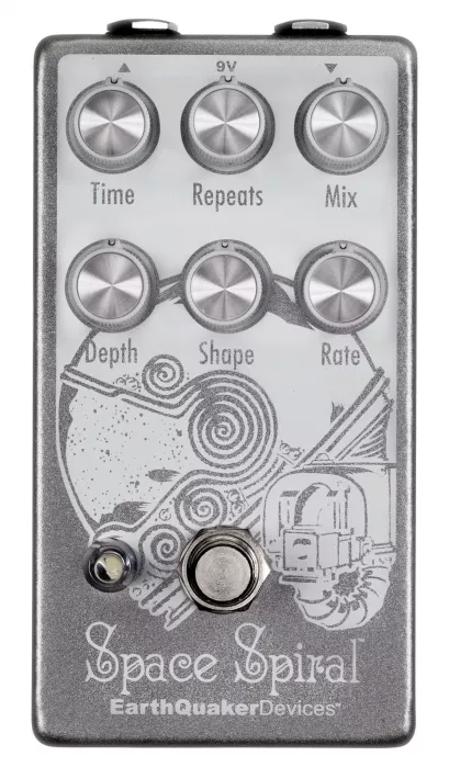 Space Spiral to ciemno brzmiący, modulowany delay, stworzony specjalnie aby zabrać Cię na wyżyny fantazji. Pomimo, że procesor echo efektu zaprojektowany został w dobie zmierzchu cyfry, dźwięki jakie wychodzą z tego urządzenia są zwyczajnie nie z tego świata. Jeśli jesteś fanem tych lejących się, mrocznych efektów delay typu "oil can" lub eterycznych dźwięków starych taśmowych echo, Space Spiral będzie zdecydowanie łaskotać Twoje zmysły. Efekt może być aktywowany przełącznikiem w standardowym trybie włącz/wyłącz lub w trybie chwilowym, gdzie urządzenie działa tak długo jak trzymasz wciśnięty footswitch. Efekt posiada true bypass i jest ręcznie produkowany w Ohio, USA.