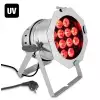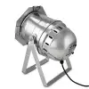 W zestawie znajduje się regulowany, podwójny uchwyt zapewniający różnorodne możliwości montażowe oraz trwale połączony kabel sieciowy z wtyczką Schuko. Lampa PAR pracuje w zakresie od 110 do 250 V AC.