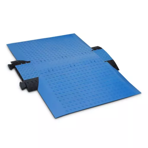 Defender WHEELCHAIR RAMP to komfortowy podjazd dla wózków inwalidzkich dla mostów kablowych Defender MIDI, które nadają się także do przekraczania przy użyciu chodzików, wózków i leżanek. Zestaw zawiera most kablowy Defender MIDI z niebieską pokrywą i otwory dla wymaganego przymocowania, 6 modułów rampy i 4 krawędzie. Podjazd dla wózków inwalidzkich Defender zrobiony jest z odpornego na olej, kwasy i benzynę TPU (termoplastycznego poliuretanu). Wszystkie komponenty do poszerzenia podjazdu dostę pne są także osobno. Ważne: nie należy przejeżdżać przez podjazd dla wózków inwalidzkich Defender pojazdami mechanicznymi.