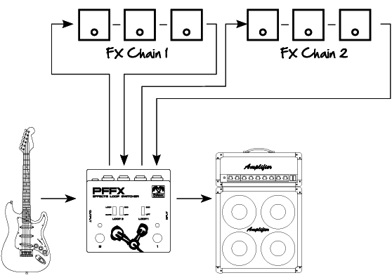 Urządzenie Palmer PFFX umożliwia oddzielne włączanie lub wyłączanie dwóch pętli efektów, a także ustawienie ich w serii. Urządzenie obsługuje precyzyjnie skonfigurowane ustawienia, np. w oparciu o rytm lub brzmienie pojedynczego instrumentu. Dla drug iego kanału efektów można wybrać funkcję wyciszenia w celu podłączenia tunera, a przełączniki Ground Lift pomagają zapobiegać powstawaniu przydźwięków. Ponadto urządzenie można włączyć w pętlę efektów wzmacniacza. Wszechstronny przełącznik nożny True Bypass jest w pełni pasywny. W celu zapewnienia działania diod LED potrzebna jest bateria blokowa 9 V lub zasilacz AC z ujemnym stykiem wewnętrznym, np. Palmer PW9V.