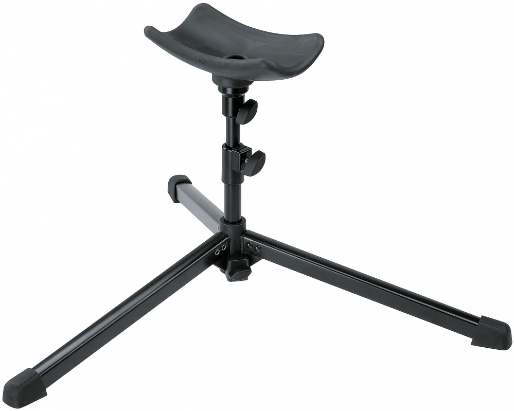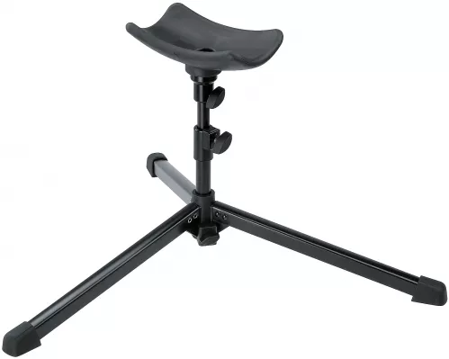 Niski, lekki model do wszystkich tub. Zatrzaskiwana podstawa z trójnożną konstrukcją, może być składana do transportu. Kombinacja drążków z regulacją wysokości. Podpórka na instrumenty pokryta gumą.