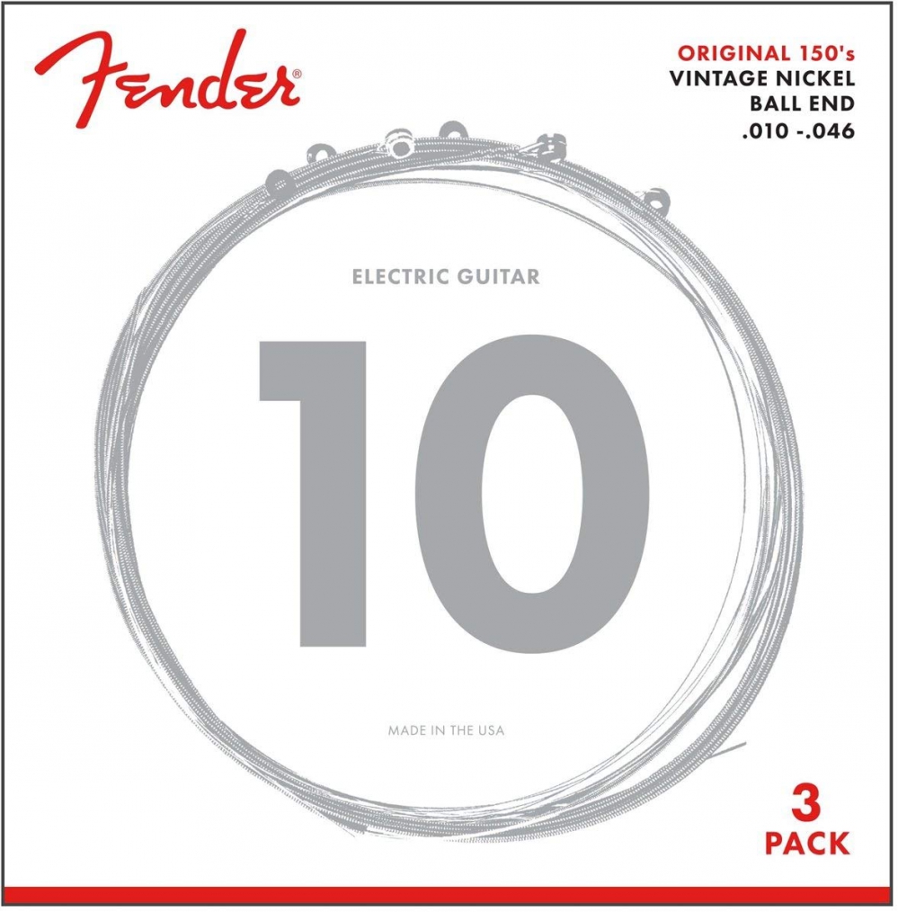 Fender Original 150 Guitar Strings, Pure Nickel Wound, Ball End, 150L .010-.046 Gauges, 3-Pack