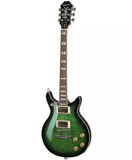 Oryginalny Del Rey po raz pierwszy został wyprodukowany w 1995 roku i był jednym z najbardziej lubianych współczesnych wzorów Epiphone'a, oferując graczom przyciągający wzrok projekt "doule cut" z łatwym dostępem do górnego progu. Dzisiaj nowy DC PRO ulepsza tę tradycję dzięki korpusowi z mahoniu z podwójnym wycięciem z topem z forniru AAA Flame Maple w celu uzyskania bogatszego brzmienia z niesamowitego sustain-u. Mahoniowy gryf ma unikalny i wygodny profil „C” oraz podstrunnicę „all access” Pau Ferro z 24 średnimi progami jumbo, skalą 24,75 cali, promieniem 12” i mostkiem Graph Tech ™ 43 mm. Podstrunnica ma inkrustację „block and triangle”, a główka Sloped Dovewing ma kultową wkładkę „Vine” z epoki 40-ch z perłowym logo Epiphone. Główka, korpus i podstrunnica mają kremowy binding i nie ma pickguard-u.