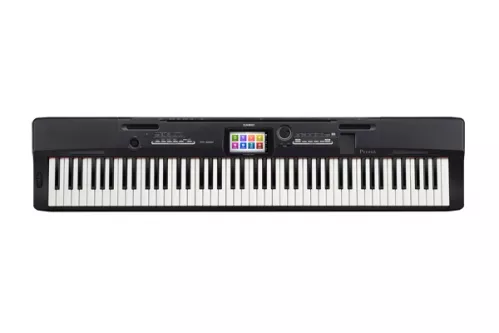 Jednakże to zaledwie początek tego, co PX-360 ma do zaoferowania. Każdy, kto szuka połączenia pianina cyfrowego z aranżerem, nie musi się już dłużej zastanawiać. W najnowszym instrumencie CASIO odnajdziemy aż 200 akompaniamentów w bardzo zróżnicowanej stylistyce oraz 550 brzmień instrumentów: smyczkowych, dętych, klawiszowych, perkusyjnych, syntezatorowych oraz innych. Ponadto możliwość nagrywania 17 ścieżkowych kompozycji lub plików w formacie audio powoduje, że w przystępnej cenie otrzymujemy to, co każda współczesna stacja robocza powinna posiadać. Bardzo ważnym udogodnieniem w obsłudze instrumentu jest centralnie ulokowany ponad 5-calowy ekran dotykowy. To rozwiązanie znacznie ułatwia pracę, czyniąc CASIO PX-360 wyjątkowo intuicyjnym instrumentem dla każdego.