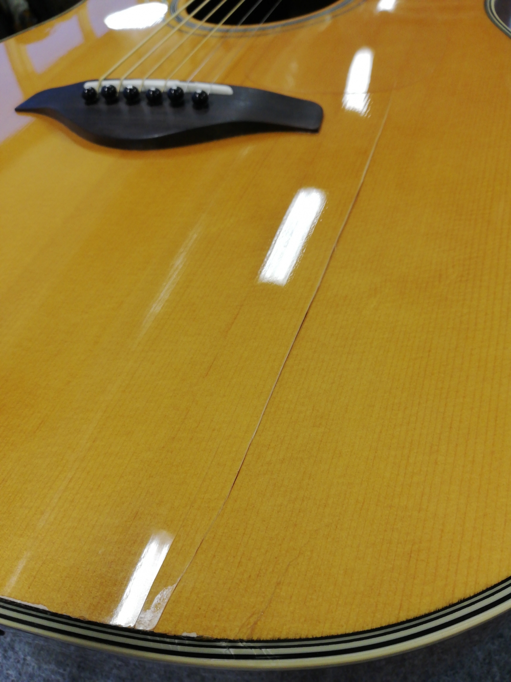 Yamaha FG TA TransAcoustic Vintage Tint gitara elektroakustyczna - uszkodzona - pęknięte pudło