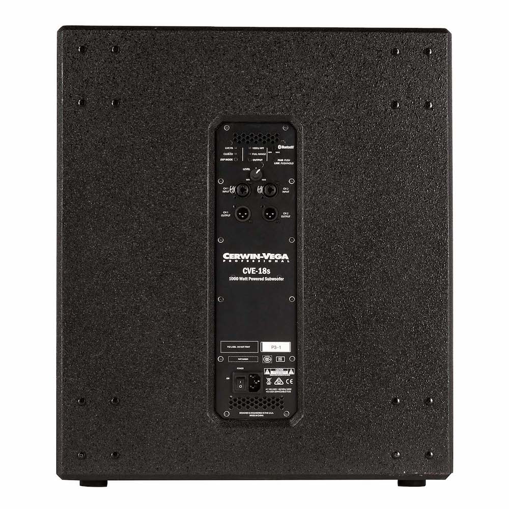 Aktywny subwoofer Cerwin-Vega CVE-18s wyposażony jest we wzmacniacz klasy D o mocy 1000 watów i 18-calowy woofer. Oprócz dwóch wejść combo XLR/TRS i dwóch wyjść XLR, dostępne są dwa proste w użyciu tryby modelowania dźwięku oraz dwa ustawienia dotyczące filtra górnoprzepustowego a propos wyjść. Dodatkowo, subwoofer CVE-18s pozwala na streaming audio poprzez Bluetooth z pozycji smartfona lub tabletu, w opcjach mono i stereo. Lekki design w połączeniu z headroomem 126dB sprawia, że CVE-18s to idealne rozwiązanie na potrzeby wydarzeń live, mobilnych DJów, klubów, restauracji, sal konferencyjnych, czy bankietów.