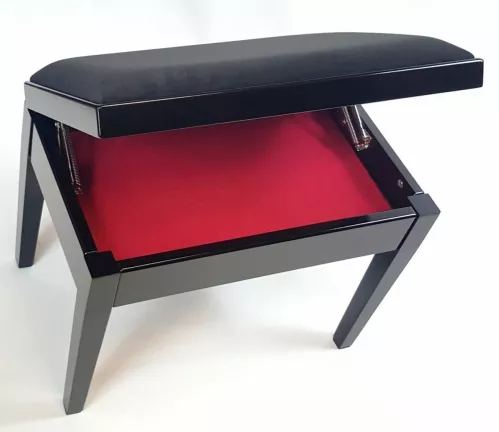 • MStar Etiuda S ława do pianina ze schowkiem na nuty, kolor: czarny mat, siedzisko: czarny welur