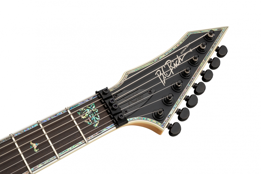 Tak jak wszystkie modele, które firma zaprezentowała na swoje 50-sięciolecie, gitary Shredzilla 7 Prophecy Exotic Archtop posiadają wszystkie cechy hard-, heavy- czy progresywno rockowego instrumentu. Głębokie wcięcia cutaway w korpusie, wąski i szybki gryf, 24 progi, pickupy DiMarzio, nowoczesna elektronika, czy blokowane klucze, to cechy charakterystyczne tych instrumentów. 7-strunowy model B.C. Rich Shredzilla Prophecy Exotic Archtop posiada mostek tremolo Floyd Rose, wykończenie Satin Black, spasowaną główkę, a także pełny binding z uchowca, który dodaje wizualnego uroku.
