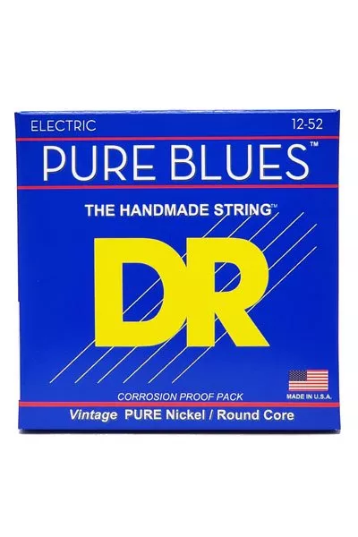 Struny DR uznawane są za jedne z najlepszych na rynku. Ręcznie produkowane w Stanach Zjednoczonych, znane są ze swojej niezawodności. Również brzmienie strun DR przekonało wielu profesjonalnych muzyków. Seria Pure Blues to ukłon w stronę tradycyjnych rozwiązań produkcji strun do gitary elektrycznej. Okrągły rdzeń i owijka z czystego niklu przywodzą na myśl produkty tworzone przed laty. Dzięki tym cechom brzmienie jest nieco ciemniejsze, z mniejszą ilością wysokich tonów. Jednocześnie wydłużony jest sustain a struny są gładsze w dotyku.