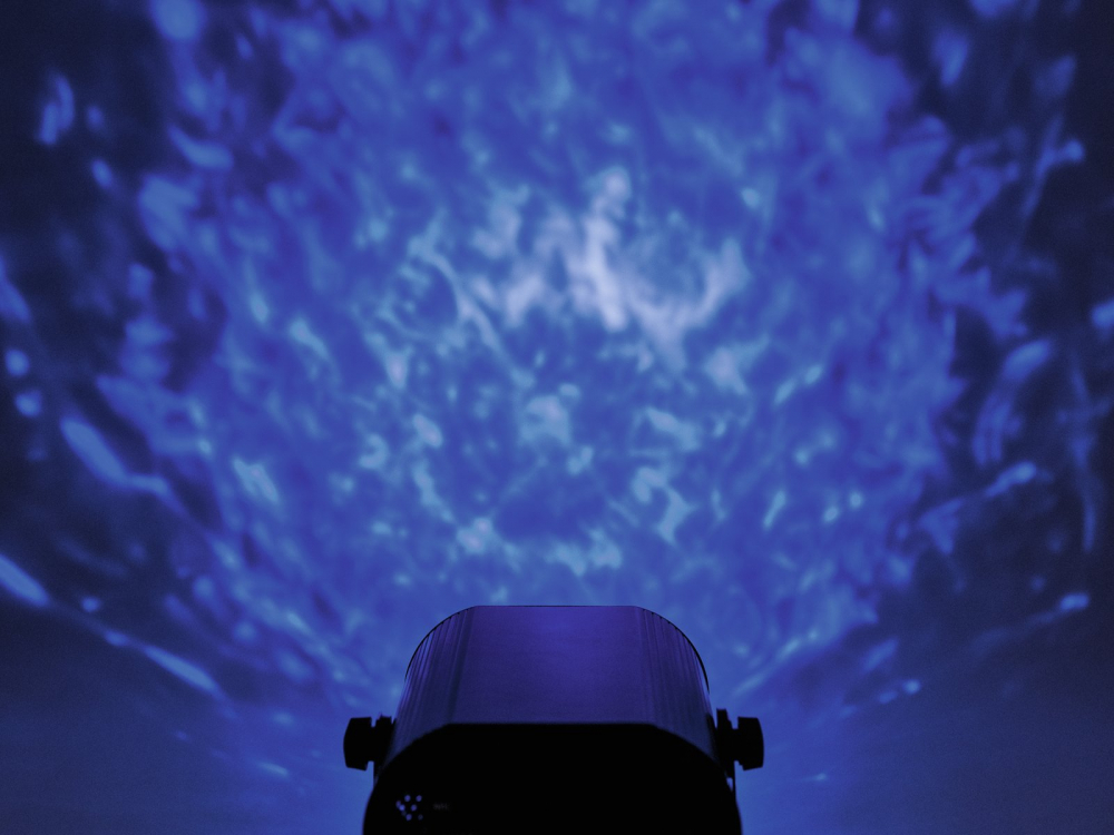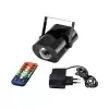 H2O Water Effect jest obsługiwany za pomocą dołączonego pilota, który nie jest większy niż karta kredytowa i mieści się nawet w najmniejszej kieszeni. Możesz dostosować m.in. częstotliwość błysków stroboskopu i prędkość obrotowa zintegrowanego koła efektów.