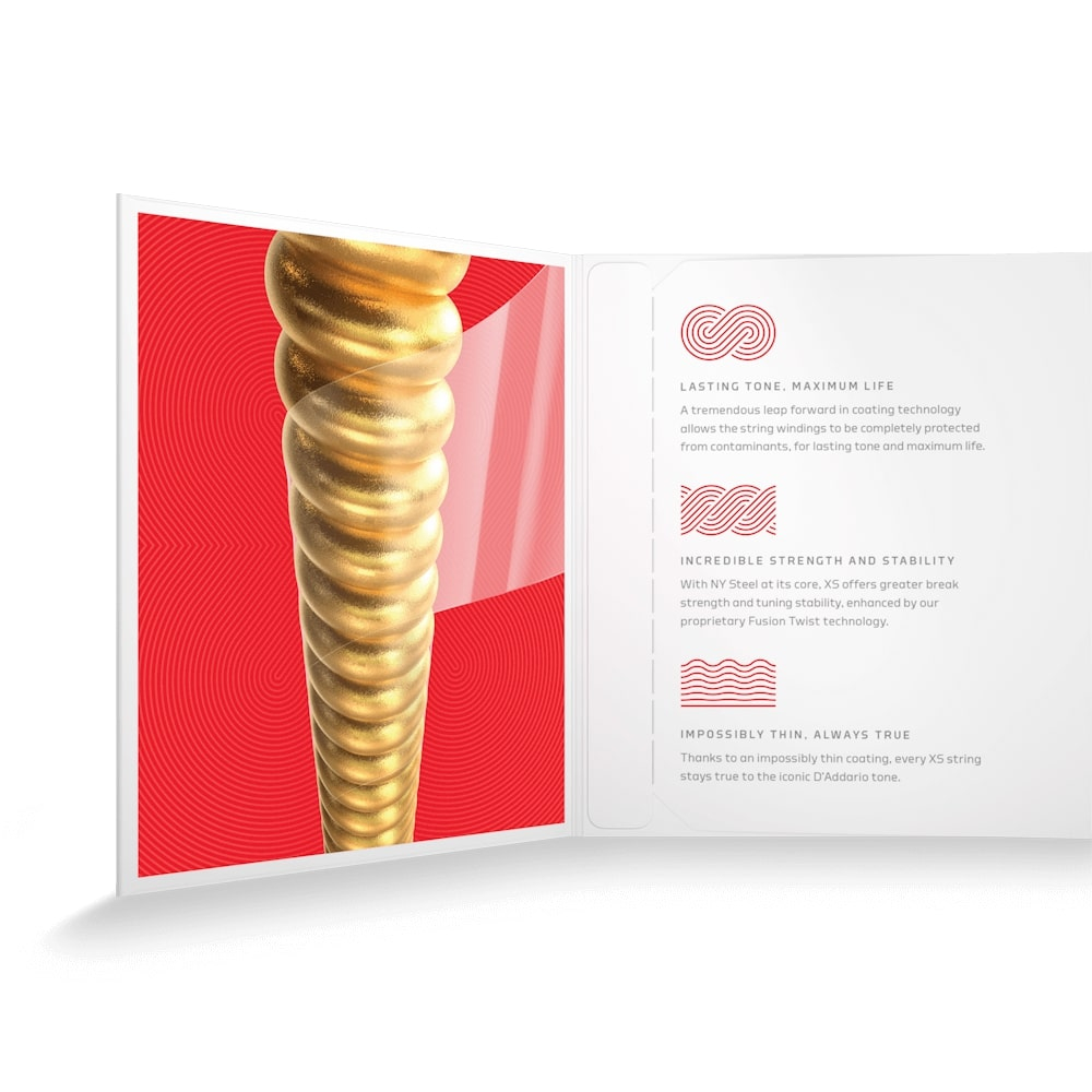 Dzięki dodaniu naszej rewolucyjnej powłoki XS, nasze odważne, jasne struny 80/20 uzyskują maksymalną żywotność, z niezwykłą gładkością w dotyku.