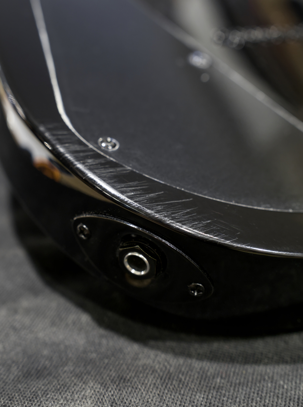 Gitara posiada otarcie na tylnej stronie korpusu. Uszkodzenie jest przedstawione na zdjęciu. Wada ma charakter jedynie kosmetyczny i instrument jest w pełni sprawny.