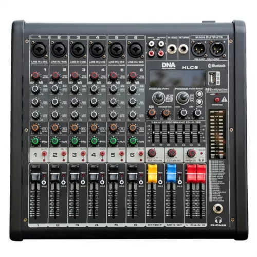 DNA HLC6to profesjonalny, analogowy mikser audio, wyposażony w sześć kanałów wejściowych, wysokiej klasy przedwzmacniacze, port USB z funkcją MP3 oraz standard bezprzewodowej komunikacji Bluetooth. Sprzęt doskonale sprawdza się jako mikser sceniczny podczas niewielkich koncertów i występów estradowych, na salach prób, a także w domowym studio nagrań.