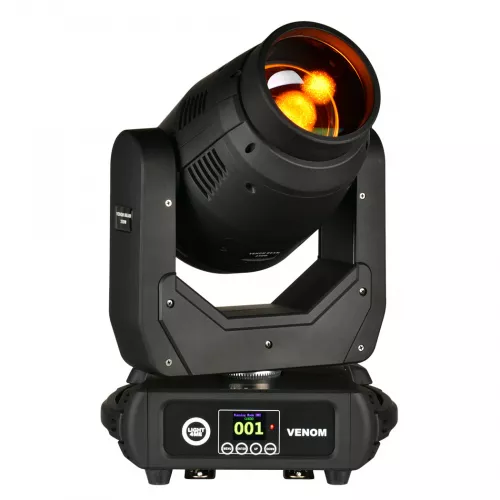 Głowa ruchoma VENOM BEAM 250 wyposażona została w koło kolorów z funkcją indeksowania, na którym znajduje się 7 filtrów barwiących światło. Wiązkę mogą kształtować również dwie niezależne tarcze gobo. Statyczna zawiera 7, natomiast rotacyjna 8 nowoczesnych wzorów, które są rzutowane na oświetlane powierzchnie. Obie tarcze mogą tworzyć efekt typu Gobo Scroll polegający na płynnym przewijaniu kolejnych wzorów tarczy, a także Gobo Shake, czyli efekt potrząsania wzorem. Rozwinięciem możliwości głowicy LED jest 16-ramienna, obrotowa pryzma rozszczepiająca światło, a także dodatkowy pryzmat o strukturze plastra miodu. Rozszczepiane wiązki światła mogą być na siebie nakładane, tworząc w ten sposób niesamowite efekty animacyjne. Całość uzupełniają zmotoryzowany i bardzo precyzyjny focus, a także stopniowany filtr frost zmiękczający wiązkę oraz rozmywający jej krawędzie.