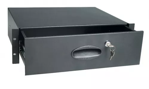 Zamykana na klucz metalowa szuflada rack 19 - 3U - konstrukcja stalowa z teleskopowymi, ocynkowanymi prowadnicami.