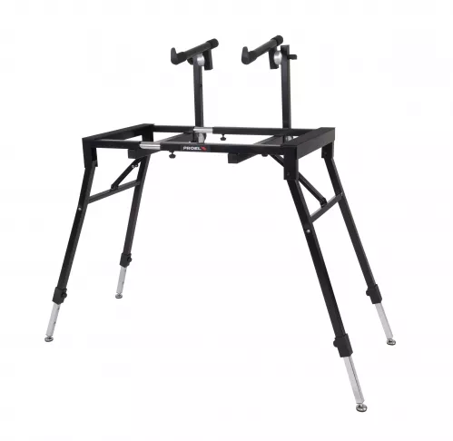 Uniwersalny składany stojak na klawiaturę z regulacją szerokości/wysokości i regulowanym drugim poziomem. Dzięki mechanizmowi EASY LOCK, regulacja poziomów jest prosta i dokładna. Konstrukcja EL260 umożliwia regulację szerokości statywu dzięki przesuwnej konstrukcji rurowej. Możliwość dodania innych akcesoriów, takich jak mikrofon czy uchwyt.