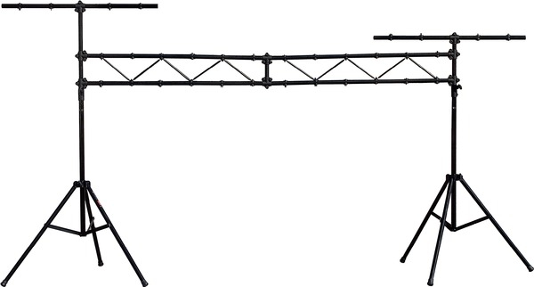Konstrukcja z anodowanego na czarno aluminium do oświetlenia, maks. obciążenie 50 kg, w tym 2 profesjonalne regulowane statywy, maks. wysokość 3 m, 2 poziome pręty na 8 puszek, 2 aluminiowe kratownice (długość pojedynczej kratownicy: 1,5 m) wraz z mocną nylonową torbą.