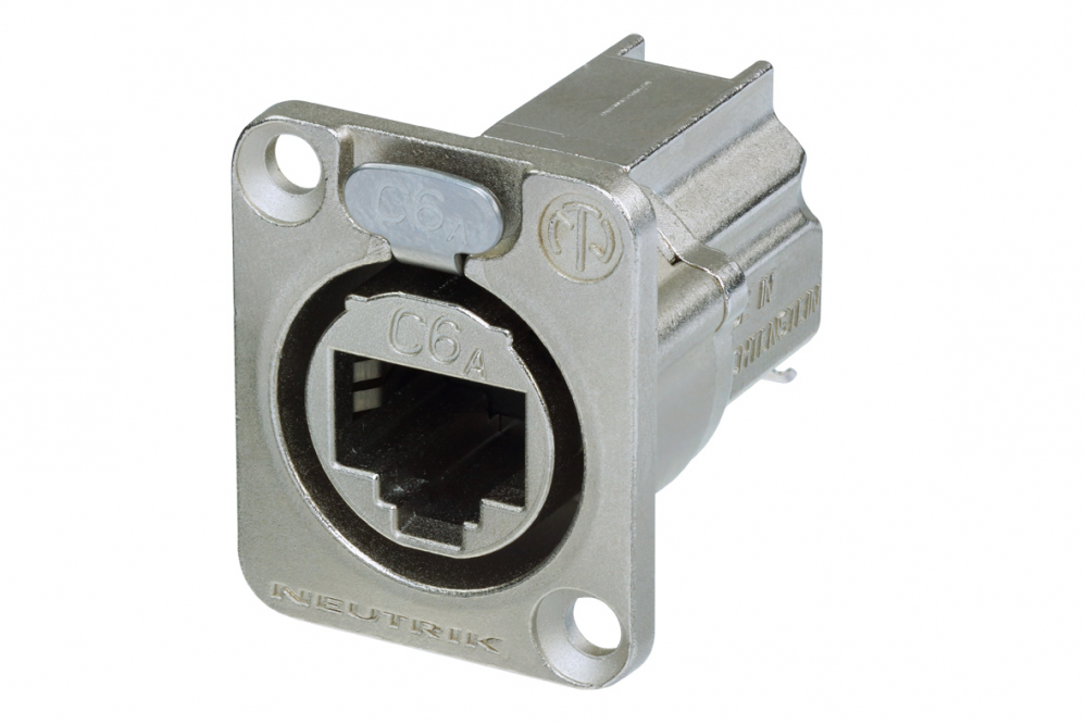 Złącze Proel NE8FDXY6 do montażu panelowego w kształcie litery D, zgodne z normami ISO/IEC 11801 i TIA/EIA 568-C.2. Złącze jest kompatybilne z istniejącą gamą etherCON CAT5.