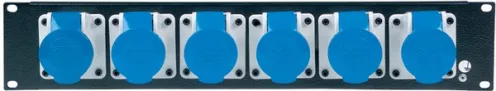 2U wired 19? rack module, n. 6 x 16A - 2P+G - socket (IP44 -230V~ CEE - h6 - DIN VDE 0623, EN 60309-2). Blue sockets.