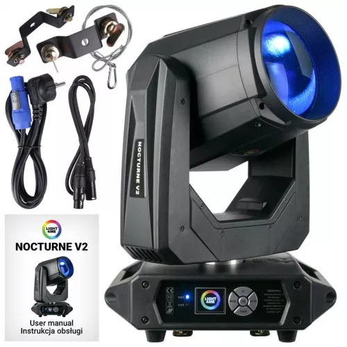 Light4Me Nocturne V2 to profesjonalna głowica ruchoma oparta na lampie wyładowczej, wykorzystywana jako oświetlenie estradowe podczas koncertów, występów, pokazów, gali oraz różnego typu wydarzeń wymagających aktywnego oświetlenia. Reflektor tworzy wąską wiązkę typu beam o kącie świecenia wynoszącym zaledwie 1,5 stopnia. Wyposażony został w bardzo mocną, białą lampę wyładowczą o mocy 295 watów, dzięki czemu może pracować nawet na dużych scenach.