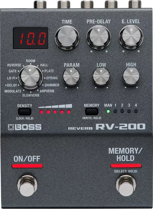 RV-200 oferuje inspirujące pogłosy i najwyższej jakości dźwięk w smukłej konstrukcji serii BOSS 200. Dwanaście wszechstronnych typów pogłosu - w tym nowo opracowany Arpverb - zapewnia wszystko, od subtelnych barw przestrzennych po złożone, marzycielskie tekstury do eksploracji. Błyskawiczne wybieranie dźwięków za pomocą interfejsu szybkiego dostępu. Dostępne 127 miejsc do zapisu ulubionych ustawień. Przenieś grę na wyższy poziom, dzięki wbudowanym wszechstronnym przełącznikom nożnym, z rozbudowanymi możliwościami zewnętrznego sterowania i przykuwającymi uwagę kreatywnymi funkcjami, takimi jak Warp czy Twist.
